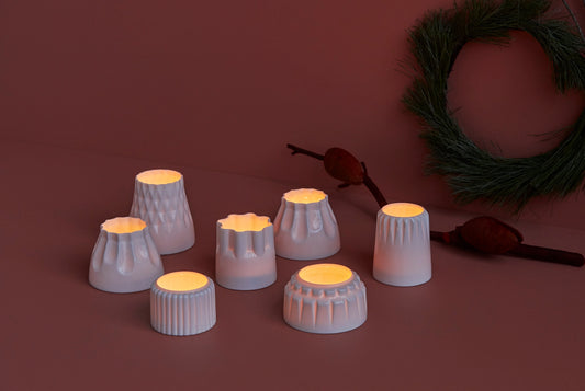 I hjertet af Alba-kollektionen ligger det underspillede design, som prioriterer form og funktion uden at gå på kompromis med skønheden. De afrundede overflader på Alba fyrfadsstagerne er forbedret med subtile, geometriske mønstre, der tilføjer tekstur og interesse, mens de opretholder en minimalistisk æstetik. Hvert stykke er fremstillet af hvidt, gennemsigtigt porcelæn, hvilket giver det et rent, tidløst udseende, der passer til både moderne og traditionelle interiører.