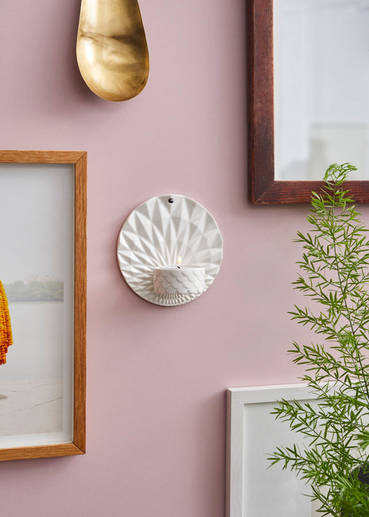 Dottir also offers a selection of wall-mounted candle holders, designed to add a unique touch of elegance to any space. These pieces, featuring a combination of geometric patterns and soft colors, are perfect for smaller spaces or as an accent on a gallery wall. The tea lights are held in beautifully designed porcelain holders, casting a soft glow that adds warmth to your evenings.